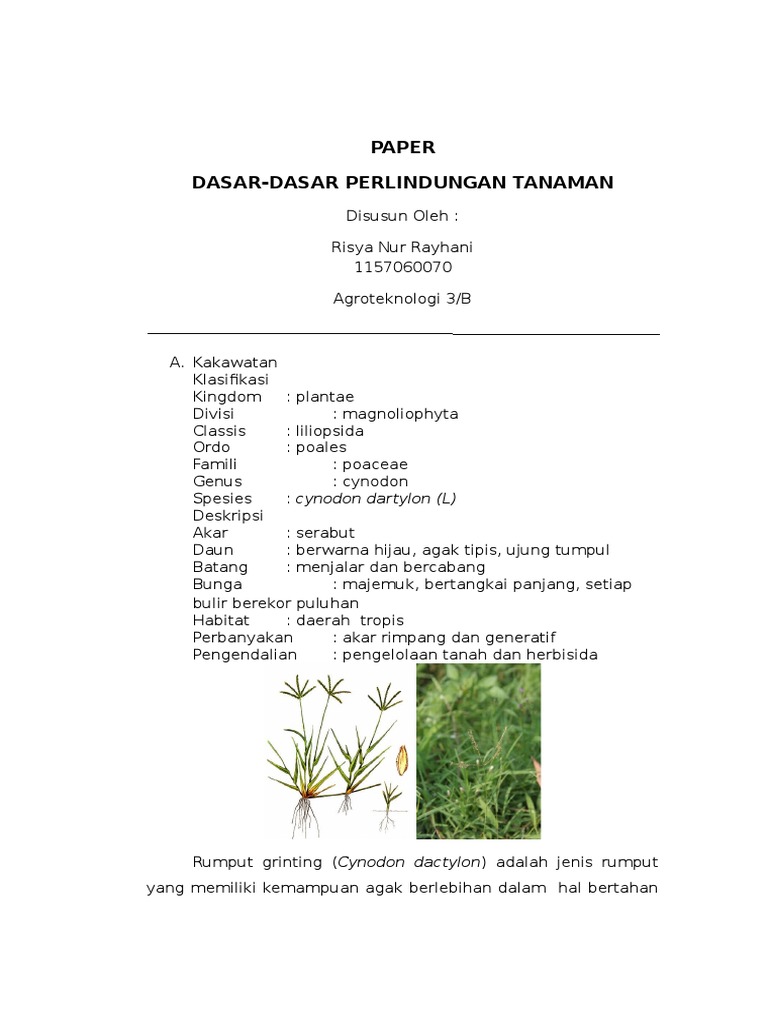 433344125 Doc 149 52kb 2015 10 12 00 17 50 from data03.123doks.com .grinting berikut ini beberapa tips at rumput grinting dan informasinya, yang membahas mengenai apa manfa tersebut dengan berbagai kumpulan tips artikel lain, yang berhubungan dengan at rumput. Rumput grinting (cynodondactylon) merupakan tumbuhan yang diduga berasal dari bagian utara dan timur afrika, asia, australia dan eropa bagian. Cara menangani gulma rumput bermuda. Rumput merupakan tumbuhan yang termasuk dalam kelompok monokotil yang mempunyai daun berbentuk sempit mini varigata. Selain itu rumput grinting sangatlah. Rumput pakan ternak adalah jenis rumput yang bisa digunakan dalam usaha ternak. Bunga rumput grinting / rumput grinting latarbelakang rumput grinting ( cynodondactylon ) adalah jenis rumput yang memiliki kemampuan agak berlebihan. Rumput grinting memiliki kelebihan tersendiri diantara jenis jenis rumput lain.
